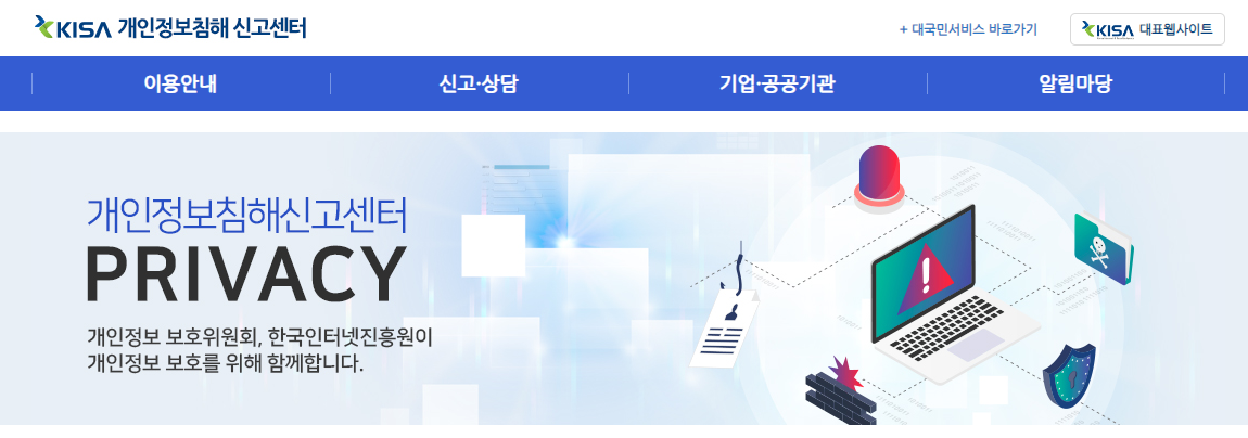 개인정보 유출 신고방법 및 확인방법 안내 바로가기