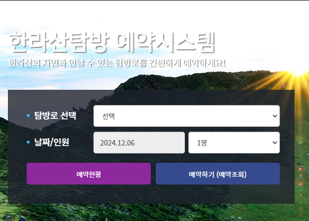- 한라산 국립공원 예약 시스템에 접속합니다